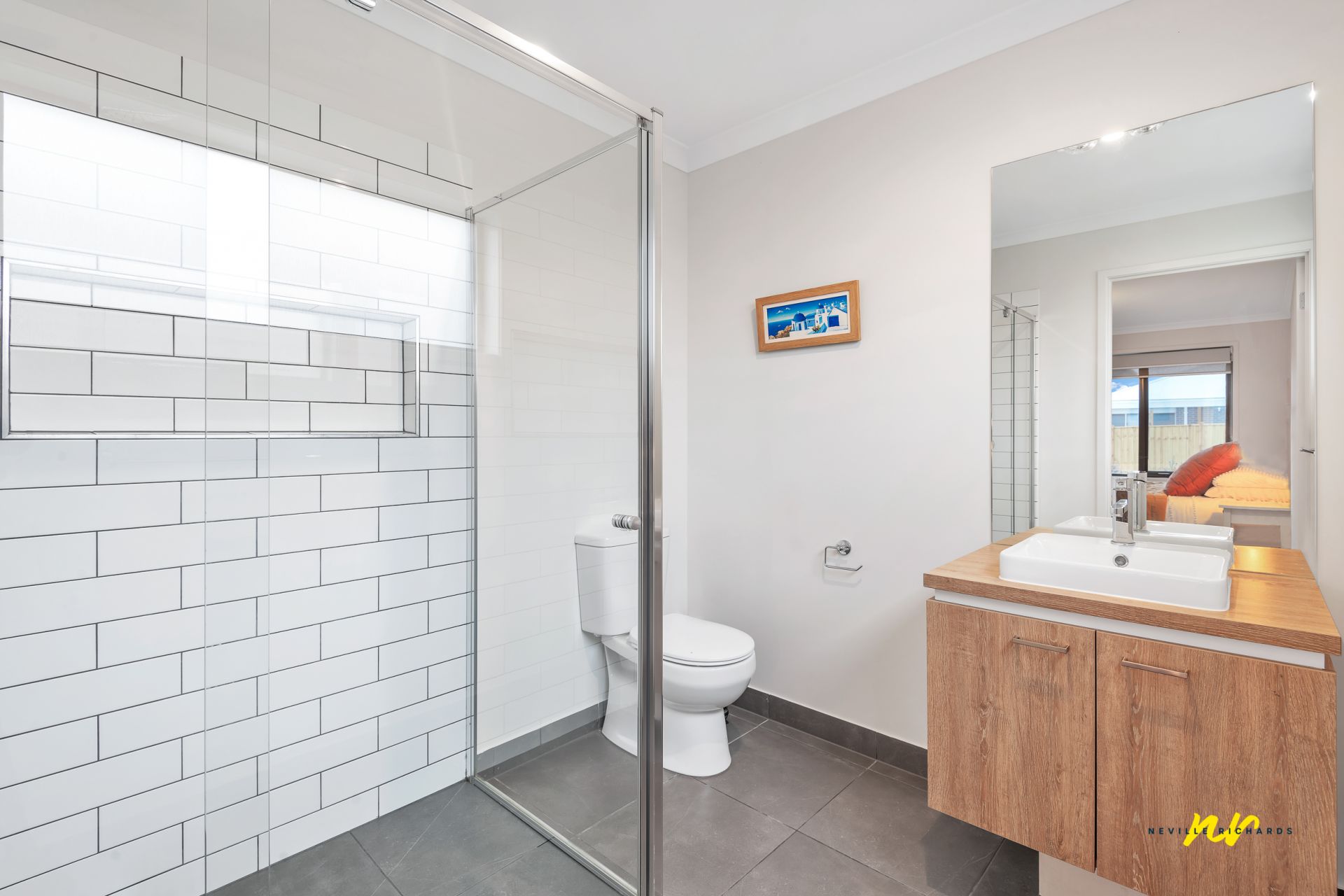 • The kitchen is 'top shelf' in every sense; sleek contemporary straight lines work seamlessly with earthy textures and tones. Expansive dual stone benchtops, custom cabinetry, pendant lighting, stainless steel appliances and oversized wrap around walk in pantry.