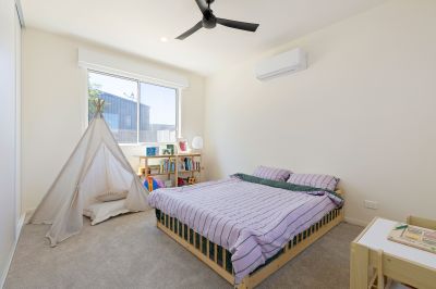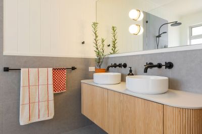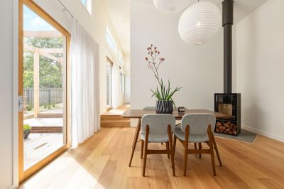 Soaring high ceilings and striking hardwood timber floors immediately set the tone, creating a warm and inviting atmosphere throughout. The home offers three generous bedrooms, each fitted with spacious robes, while two exquisitely renovated bathrooms showcase premium finishes and craftsmanship to the highest standard.