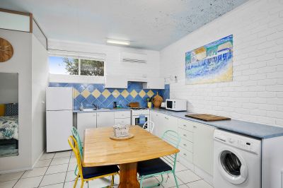 The charming, renovated accommodation is comprised of 2 ground floor 2 bedroom apartments as well as a motel room. Complimented by a solar heated swimming pool and parking for 4 cars 'Arlingtons' offers a relaxed seaside accommodation option. Each of the fresh 2-bed apartments is equipped with an open-plan living/dining area, cooking facilities, air conditioning, new bathroom and private outdoor area. The comfortable 1 bed, 1 bath motel room has air conditioning and private outdoor area.