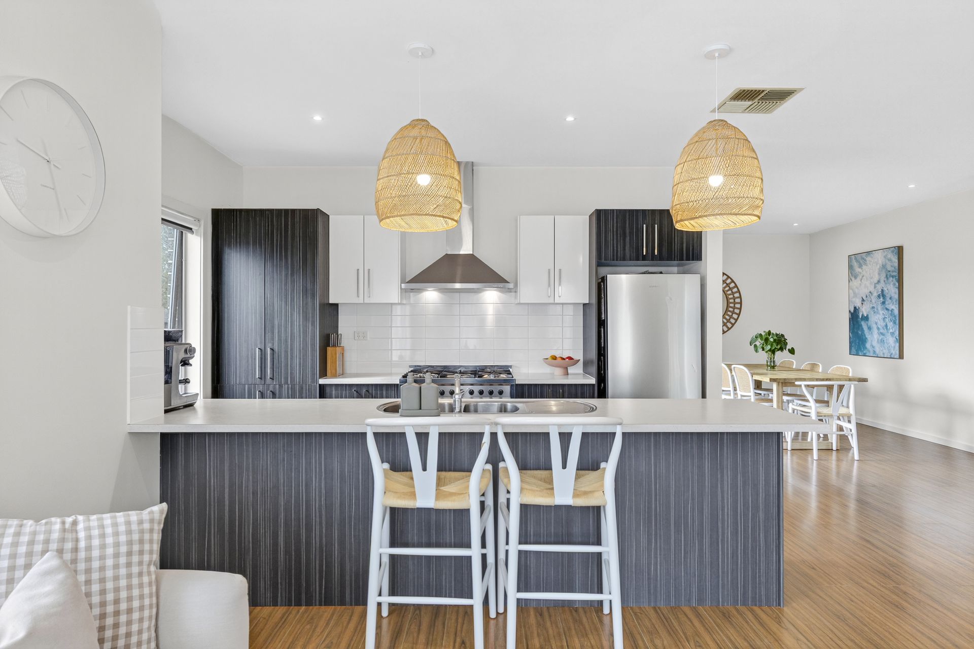 Step inside to a vast, light-filled open-plan kitchen, living, and meals area where organic tones and quality finishes create a relaxed, contemporary feel. The flowing floorplan caters perfectly to carefree coastal living, while the adjoining alfresco and deck provide the ideal space to entertain outdoors or simply bask in the warmth of the afternoon sun.