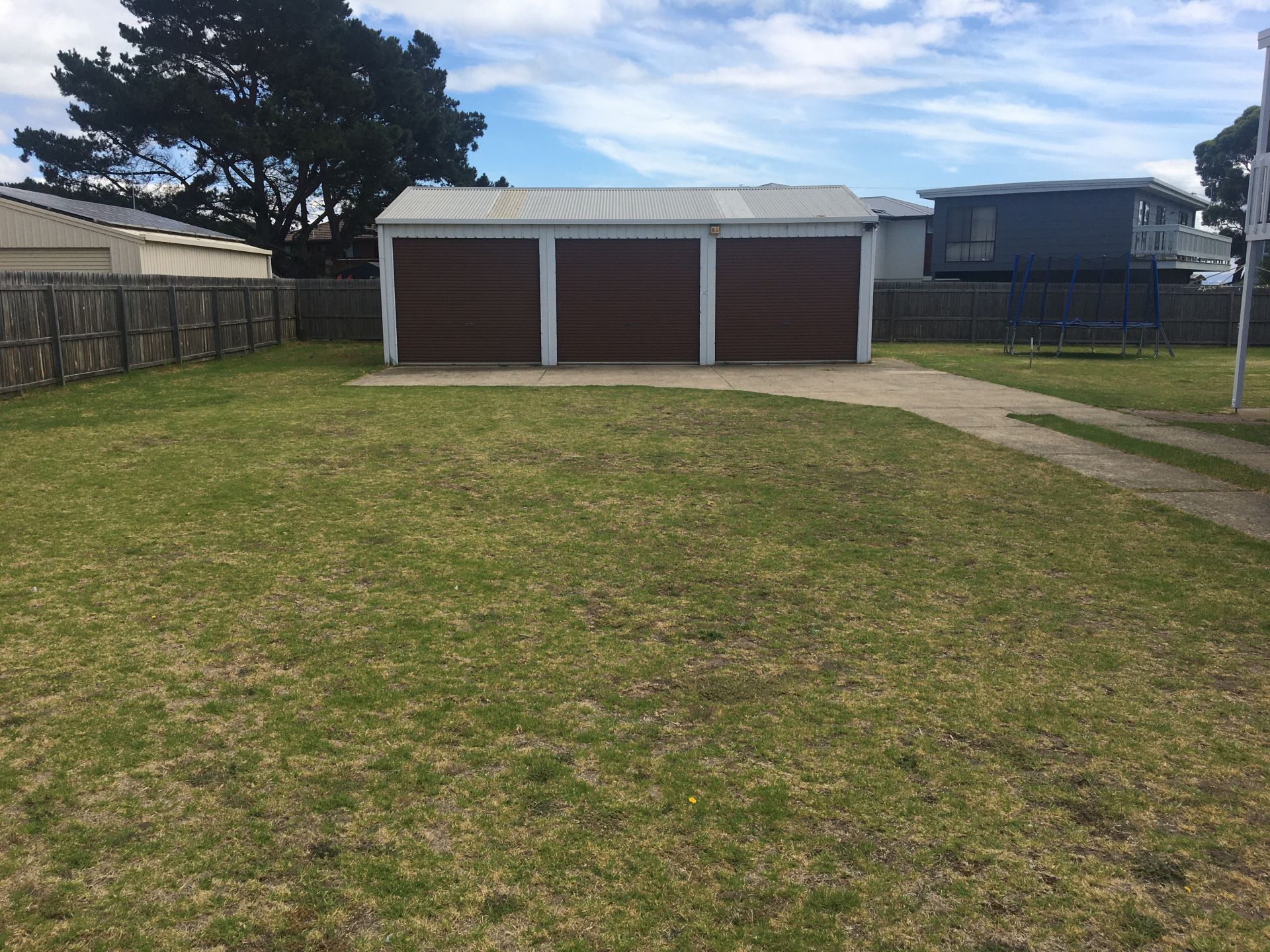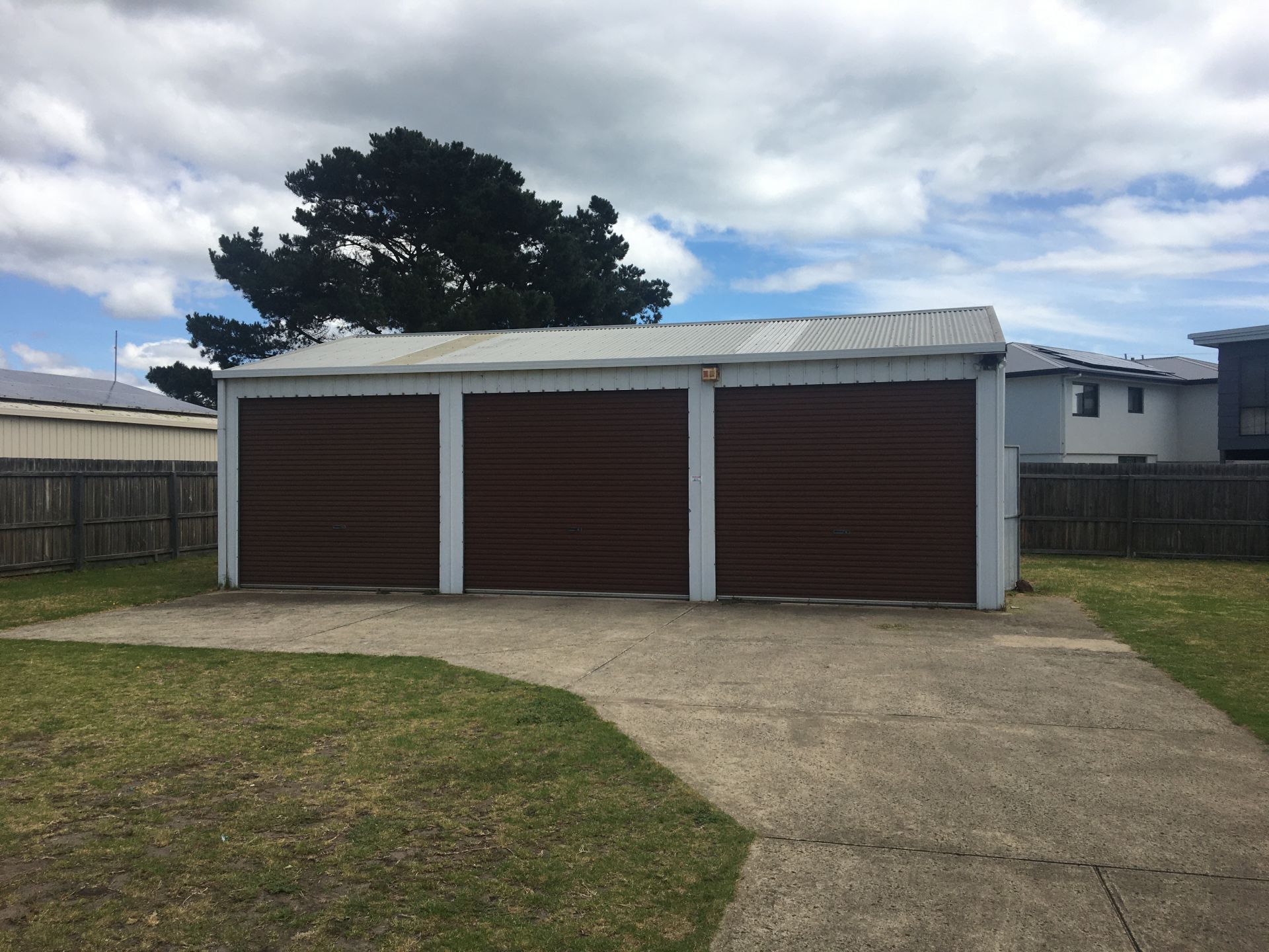 The shed is 11 metres x 7.6 metres approx. and features three roller doors and is ideal for those seeking storage options for a caravan or boat.