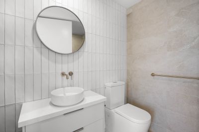 The master suite is a private sanctuary, featuring built-in robes and a luxurious ensuite that exudes sophistication. The second bedroom, also equipped with built-in robes, is serviced by a stylish main bathroom with contemporary finishes and fittings. Both bedrooms have access to the stunning balcony via sliding doors.