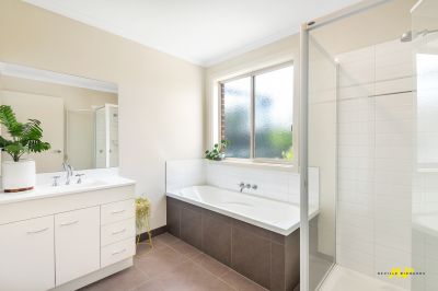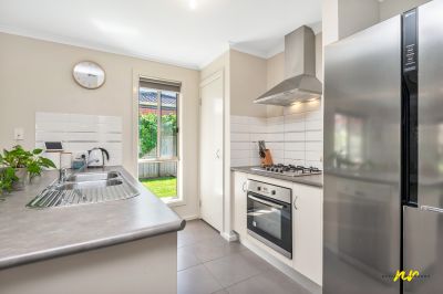The open-plan kitchen/dining/living area is a fantastic space characterised by a neutral palette and polished feature finishes. The stainless-steel appliances of the kitchen contrast sharply against the neutral feature finishes giving the room a sharp, sleek appearance. The home is heated using ducted gas-heating and cooled using reverse-cycle air-conditioning.