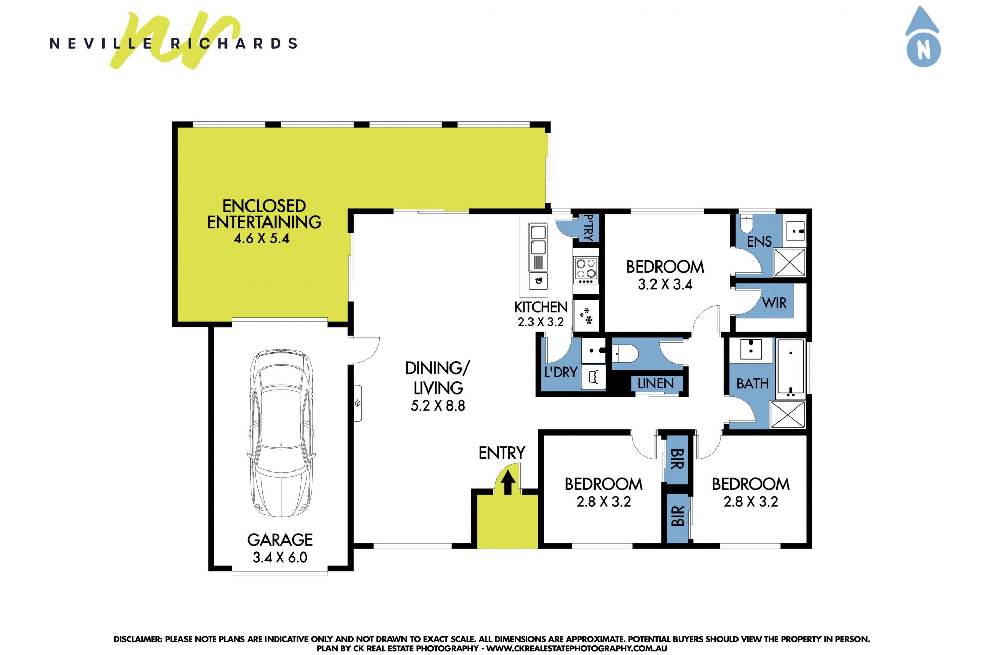 Adjacent to the living area is the enclosed entertaining area, this area provides a second enclosed living space with an outdoor feel. Perfect as an indoor garden area or play area for the kids this room provides options for entertaining during less favorable weather.
