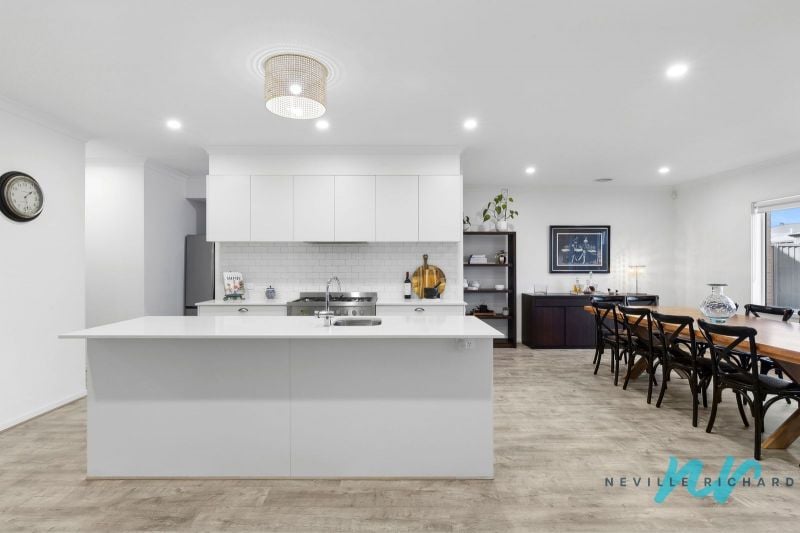 Upon entry a wide hallway leads through to the main open plan living/dining zone, incorporating a stunning chef's kitchen with stone benchtops, butler's pantry and stainless steel appliances including 900mm oven and dishwasher. Large sliding doors open onto an impressive undercover alfresco and barbecue area, creating a true indoor/outdoor entertaining experience.