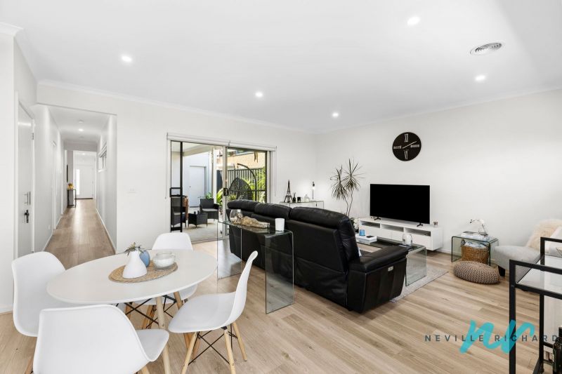 The intelligent floor-plan places the master suite at the front of the home and offers an ensuite and walk-in robe. The two minor bedrooms all contain built-in robes and are serviced by a centrally located and stylish bathroom. The functional layout also provides a designated laundry space in the oversized garage.