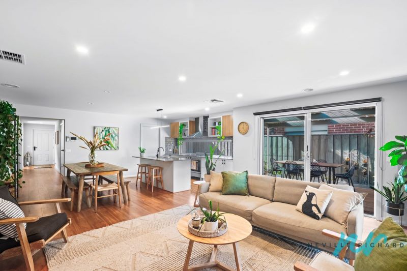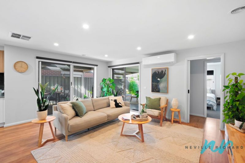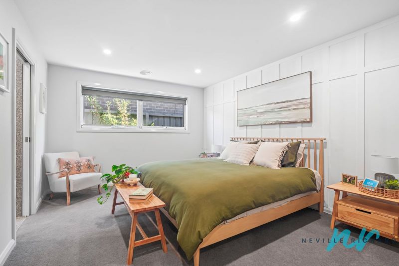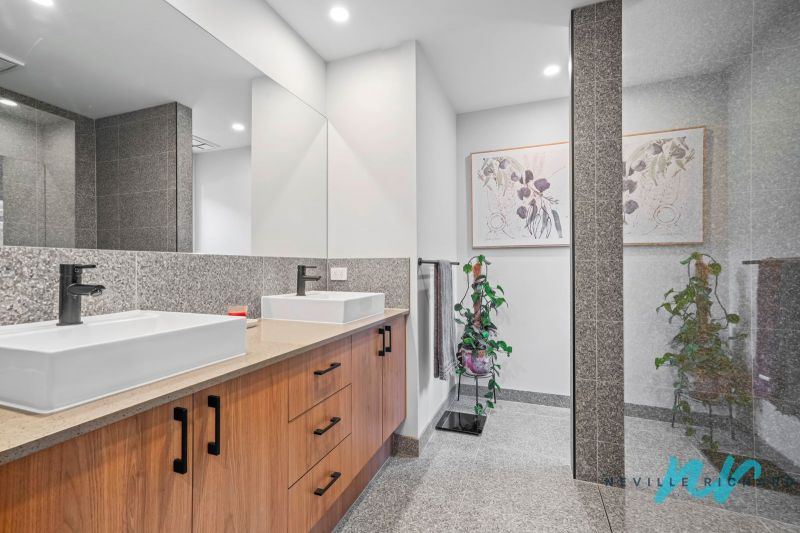 From your front living room, enjoy uninterrupted leafy views across the reserve, adding a tranquil, natural backdrop to everyday living. Inside, a thoughtfully crafted open-plan design welcomes you with timber flooring, a soft neutral palette, air conditioning, and high-quality finishes throughout.