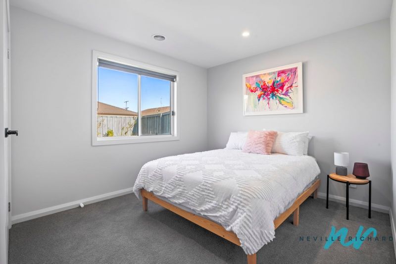 At the heart of the home, the expansive kitchen/living/dining zone seamlessly connects to an entertainers' alfresco area and the fully fenced backyard. The designer kitchen is a chef's dream, complete with premium appliances, an oversized walk-in pantry, and excellent storage.