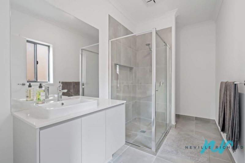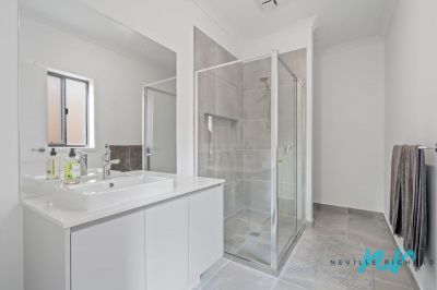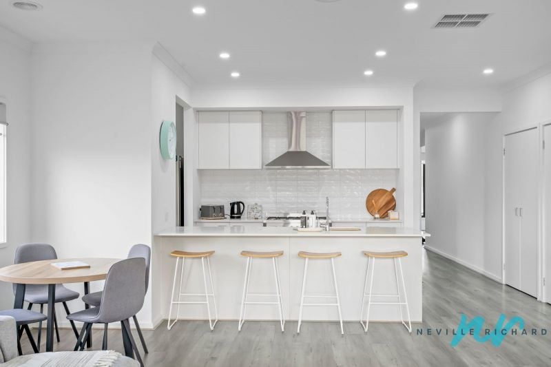 The open-plan kitchen/living/dining room offers plenty of space for a busy family. Crisp neutral tones combined with high ceilings and high door ways throughout create a true modern designer feel. This living area boasts generous proportions which creates the ideal location to conduct working-from-home affairs. The kitchen features stone bench tops, 900mm stainless-steel oven with 5-burner gas cook-top. Temperature is maintained at a comfortable temperature using ducted gas-heating and evaporative cooling.