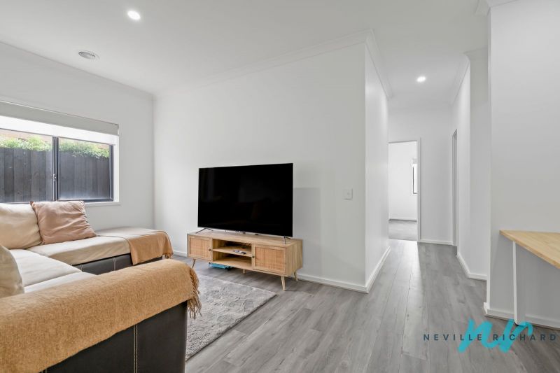 The lounge room offers a second living space for a large family. Situated at the front of the home, away from the central kitchen/living space, this private zone offers a comfortable and quiet location to unwind after a busy day.