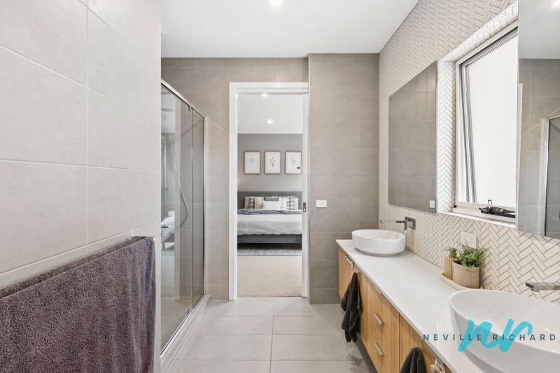 The master suite is a private sanctuary, boasting an expansive walk-in robe and a luxurious ensuite with double vanity. Three further bedrooms, each with built-in robes, are serviced by a stylish central bathroom and separate toilet.