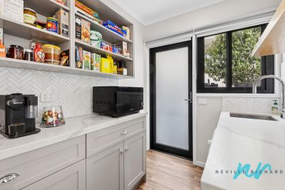 At the centre of the home, the stunning new kitchen makes a bold statement with 2-pac cabinetry, engineered stone benchtops and sophisticated marble tiling, complemented by a luxury Zip Tap providing filtered cold, boiling and sparkling water. The designer bathroom continues the elevated aesthetic, featuring an oak vanity, marble basin and Roca In-Wash electric toilet.